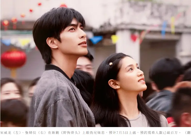 另一边,宋威龙的势头也不容小觑。今年年初,他凭着《骄阳似我》成功出圈,全平台涨粉465万,人气同样十分可观。他和张婧仪主演的伪骨科新剧《野狗骨头》,虽然热度稍逊于《这一秒过火》,但预约观看人数也已经突破百万,同样备受关注,预计将在7月5日正式上线。