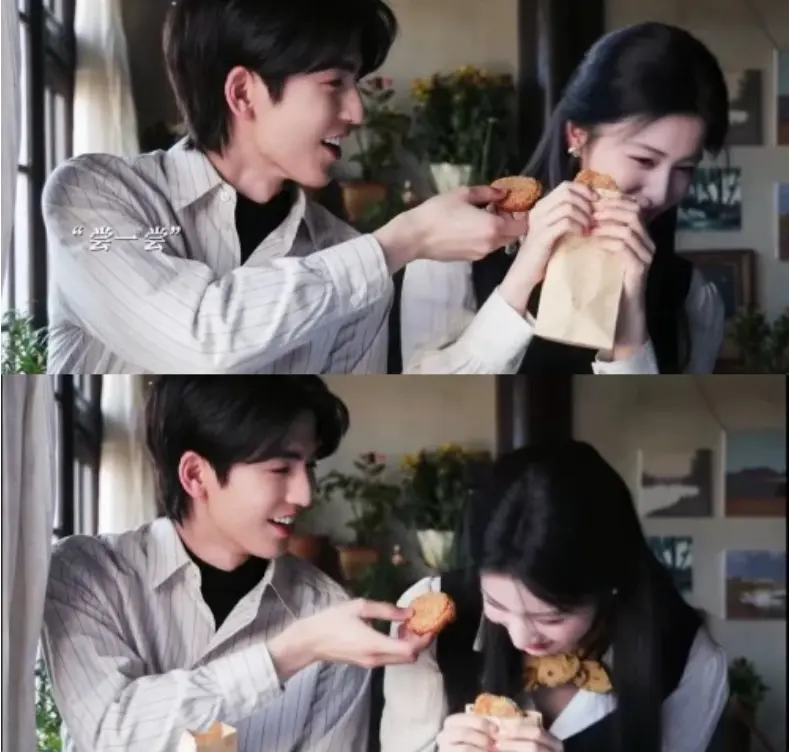 日前官方放出的最新花絮和海报,更是把甜度拉满,狠狠戳中观众的心。花絮里,张凌赫和王楚然坐在一起吃烧饼,画面接地气又温馨,王楚然细心地伸手,轻轻拨掉张凌赫嘴唇上沾着的白芝麻,突如其来的小动作让张凌赫瞬间呆滞,眼神直直地看着王楚然,带着点懵懂又宠溺的模样。紧接着,他掏出自己手里的烧饼,温柔地想喂给王楚然,还小声解释“这是不一样的口味”,王楚然则害羞地摇摇头,让他自己吃,可张凌赫却故意撒娇似的坚持要喂,王楚然无奈又害羞,索性把头撇到一边,两人打情骂俏的模样,甜度超标,CP感直接拉满。而最新海报中,张凌赫从王楚然后面紧紧抱着她,脑袋轻轻依偎在她的肩膀上,两人18公分的身高差,显得格外登对,温柔又缱绻,光是看海报就已经让人狠狠期待正片了。