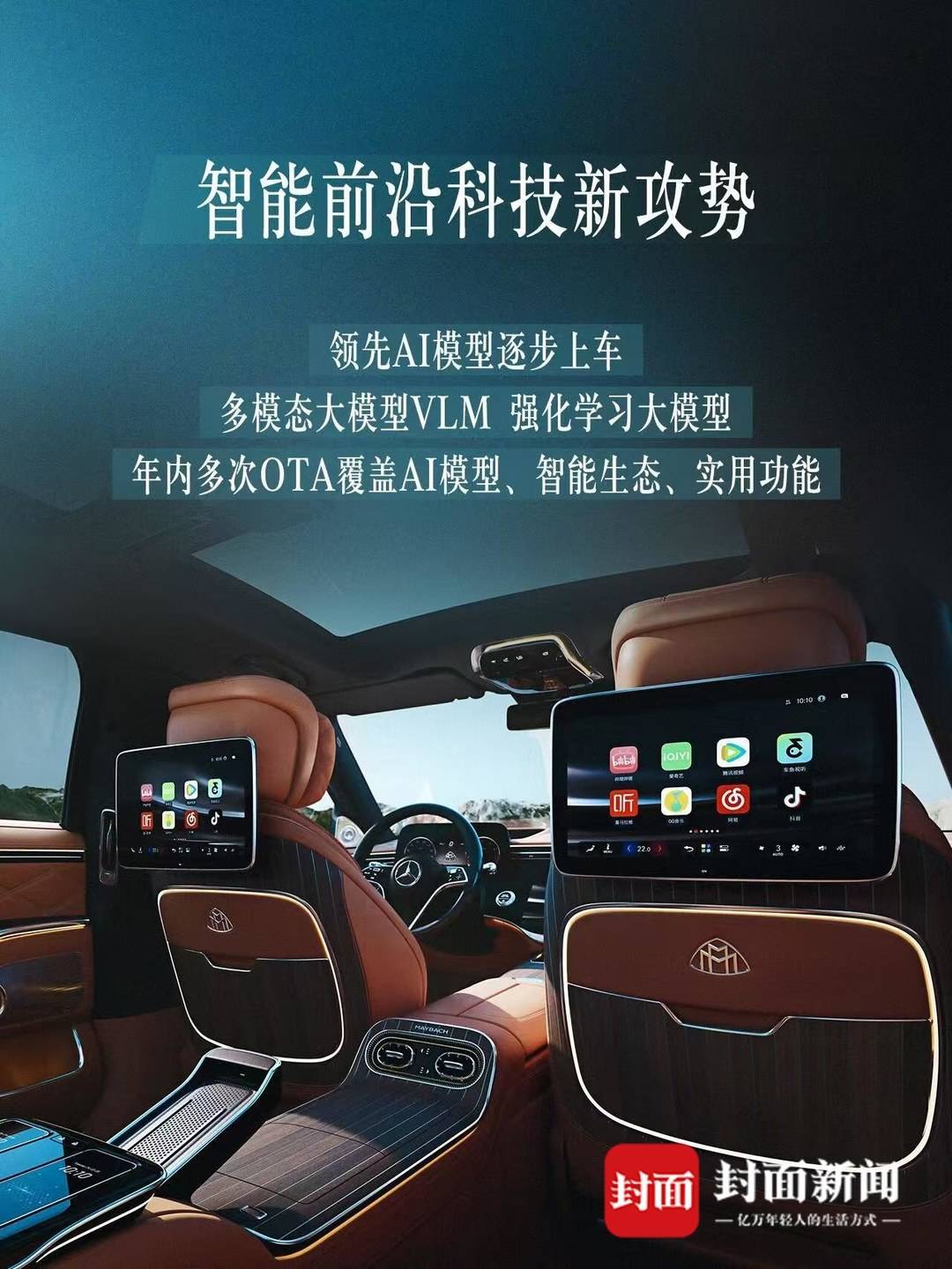 智能技术成为本次参展核心亮点。奔驰依托MB.OS架构,以AI大模型全面赋能座舱与智驾:中国团队主导研发的高端后排娱乐系统搭载VLM多模态模型,虚拟助手升级为专属AI管家,提供有温度的主动式服务;强化学习大模型让领航辅助驾驶更安全丝滑,覆盖油电全系车型,且全系MB.OS车型将通过多域OTA实现智能生态常用常新。
