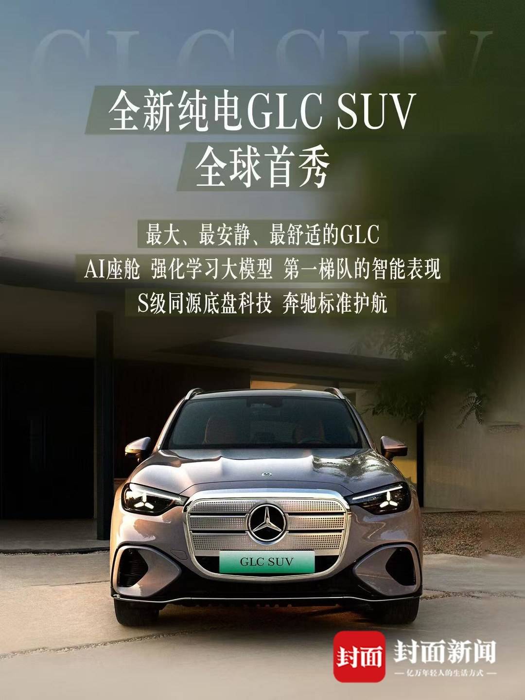 据了解,本次车展梅赛德斯-奔驰以全维度产品矩阵诠释多维豪华。全新纯电GLC SUV全球首秀堪称焦点,作为品牌畅销车型的首款纯电力作,新车承袭家族经典设计,复古盾格式格栅焕新演绎星徽美学,加长车身搭配S级同源底盘带来越级舒适体验。更搭载AI智能座舱与强化学习大模型辅助驾驶,以“最大、最安静、最舒适”的产品力重塑豪华纯电SUV标杆。